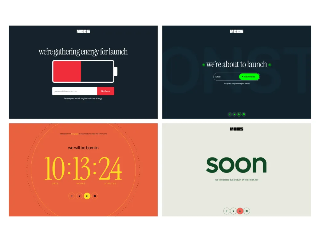 این قالبها با دقت طراحی شدهاند و هر کدام دارای انیمیشنهای خلاقانه و عناصر تعاملی جذاب هستند که میتوانند به جذابیت وبسایت شما کمک کنند. با انتخاب این قالبها، شما میتوانید فضایی را برای کاربران خود ایجاد کنید که در آن هیجان و انتظار برای راهاندازی وبسایت شما به اوج برسد. هر قالب دارای طراحی منحصر به فردی است که به شما این امکان را میدهد تا مطابق با سلیقه و نیاز خود انتخاب کنید و تأثیر ماندگاری بر بازدیدکنندگان خود بگذارید.