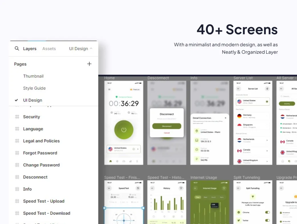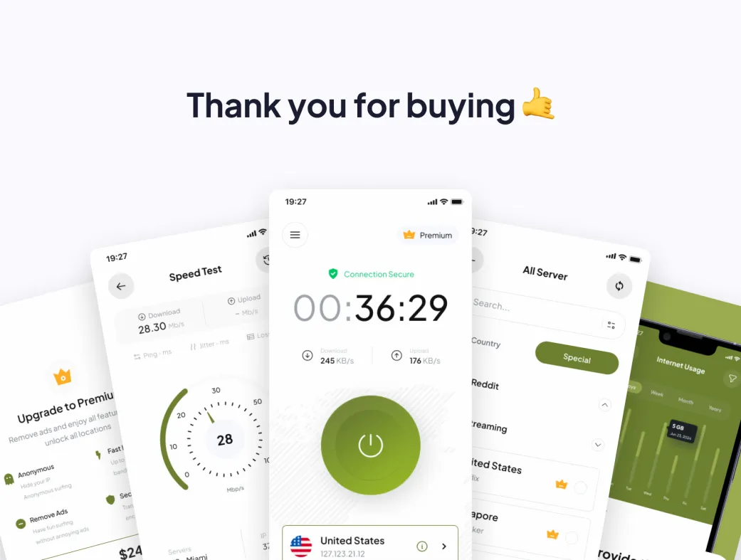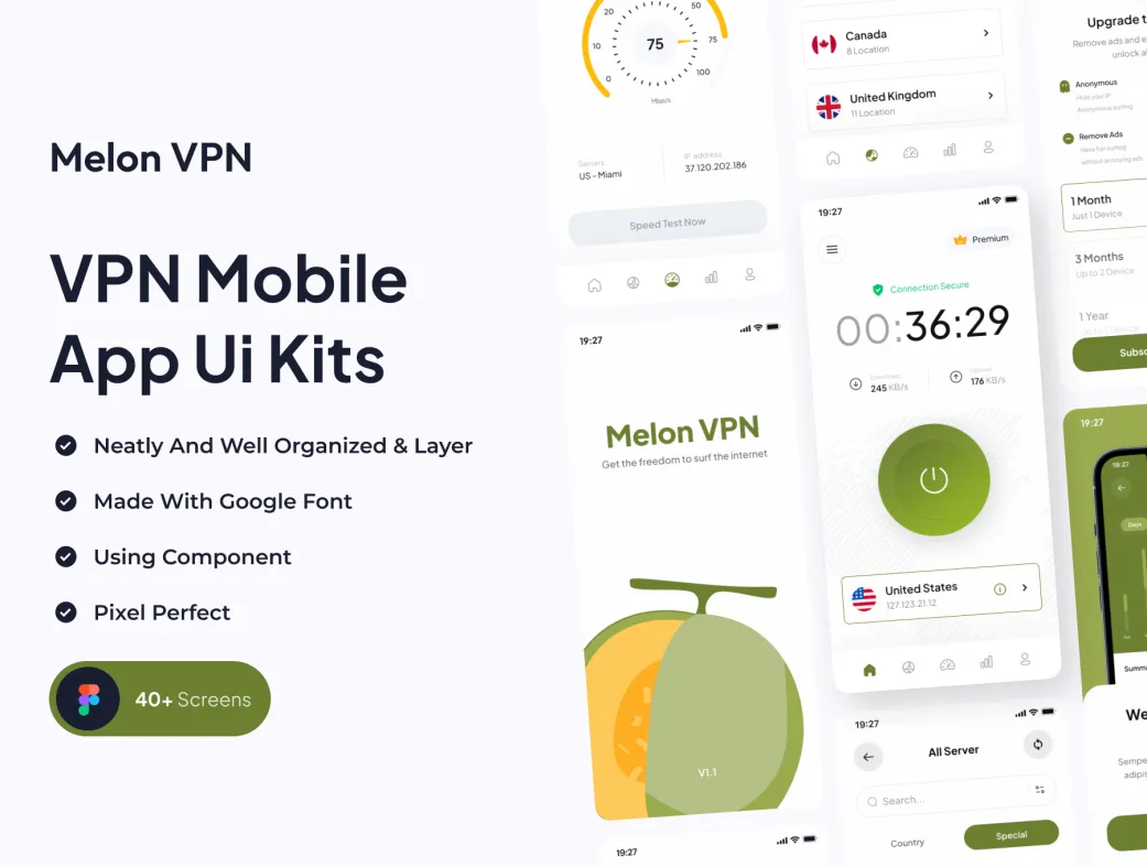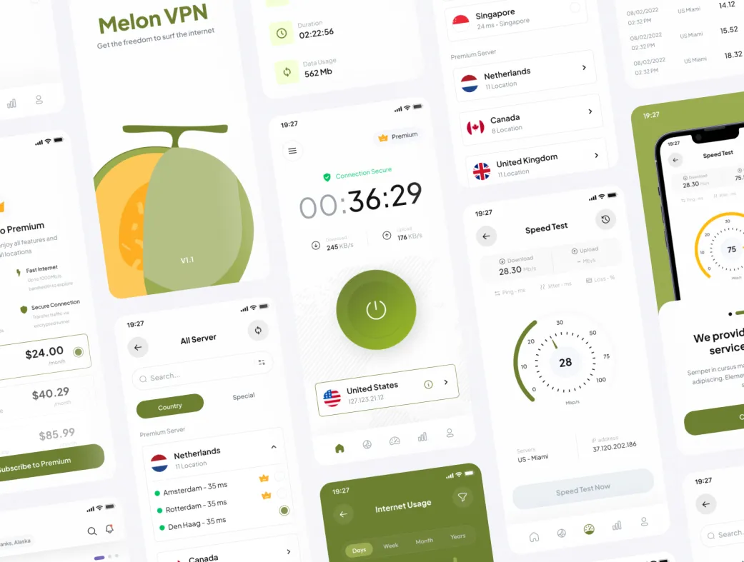 کیت UI اپلیکیشن موبایل VPN ملون | Melon | Melon VPN UI Kit