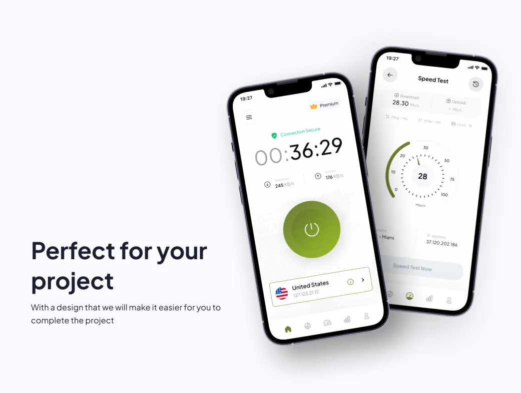 کیت UI اپلیکیشن موبایل VPN ملون | Melon