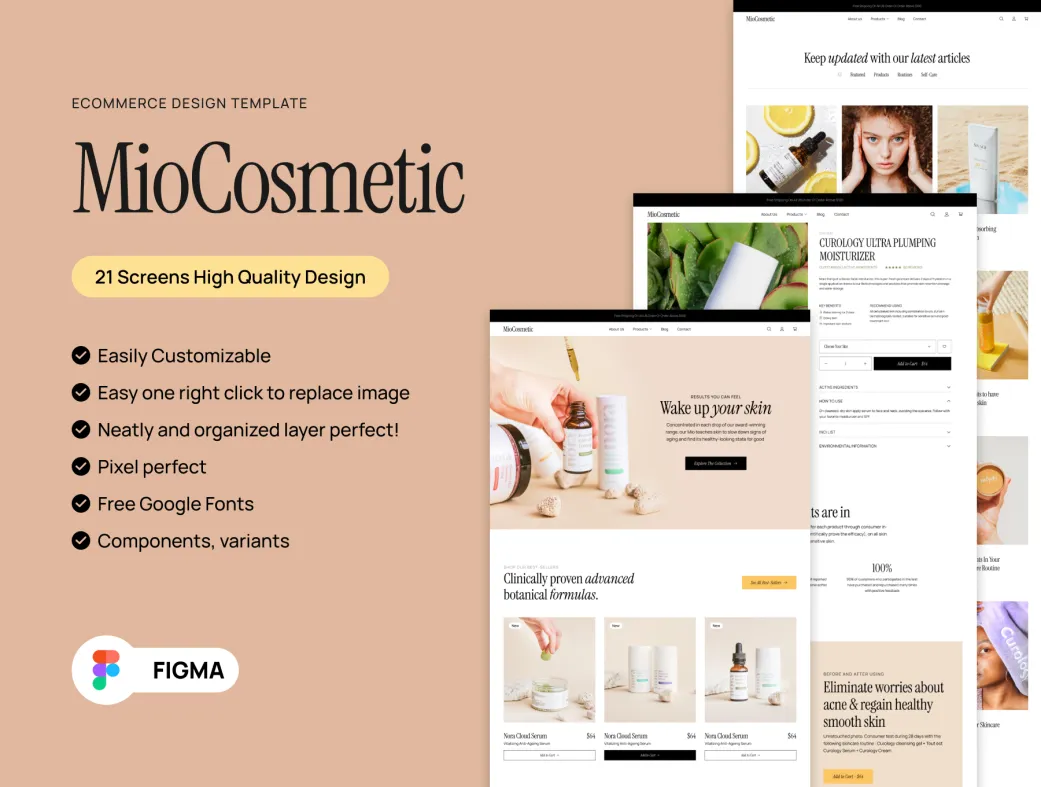 قالب میو-کازمتیک بهطور خاص برای نرمافزار فیگما طراحی شده است و به راحتی میتوان آن را در این پلتفرم استفاده کرد. -