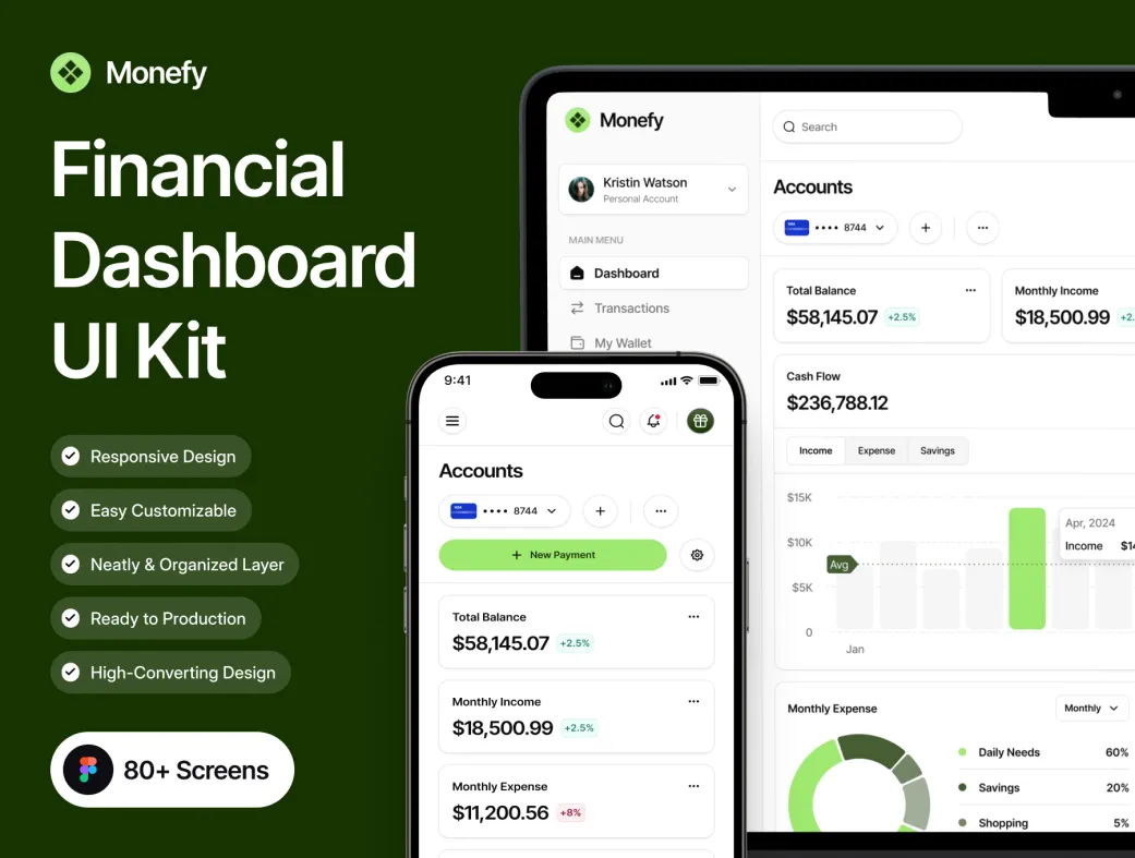 ویژگیها و مزایای برجسته Monefy – کیت UI داشبورد مالی