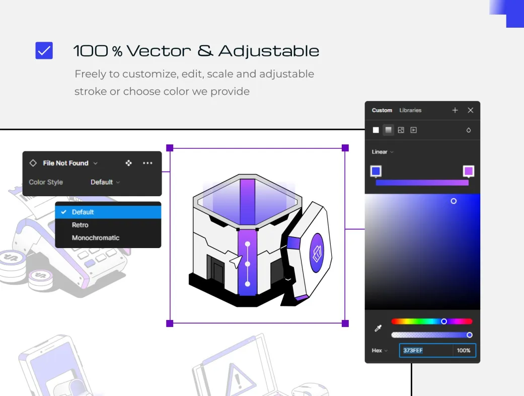 پاسخ: ایدهآل برای UI اپلیکیشنها، وبسایتها و نمایش حالتهای خالی یا خطا. - سؤال: آیا میتوان رنگها را تغییر داد؟