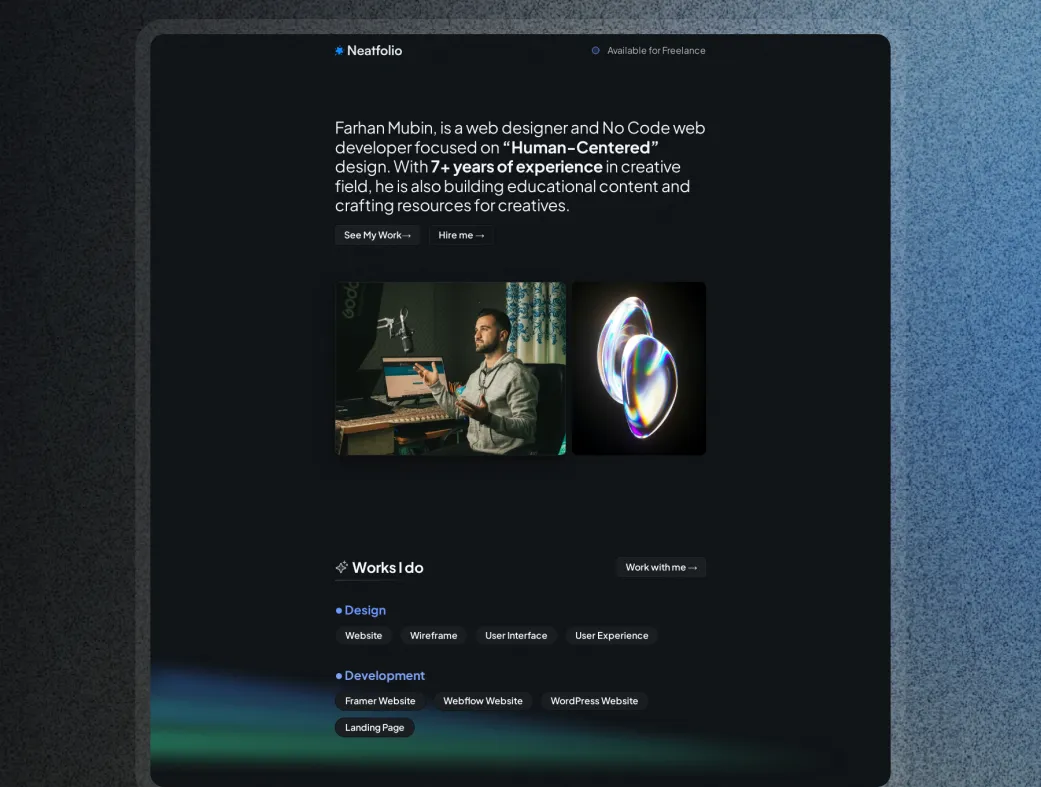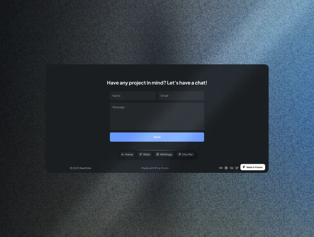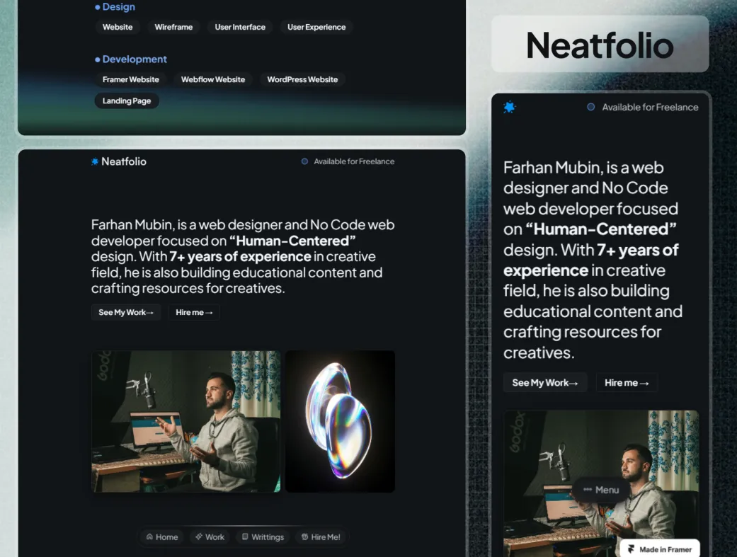 قالب وبسایت شخصی نیتفولیو یک الگوی مدرن و مینیمالیستی برای فریمر است که به شما کمک میکند سبک منحصر به فرد خود را به نمایش بگذارید. با انیمیشنهای نرم و طراحی ساده، وبسایت شما تأثیر ماندگاری بر روی مخاطبانتان خواهد گذاشت.