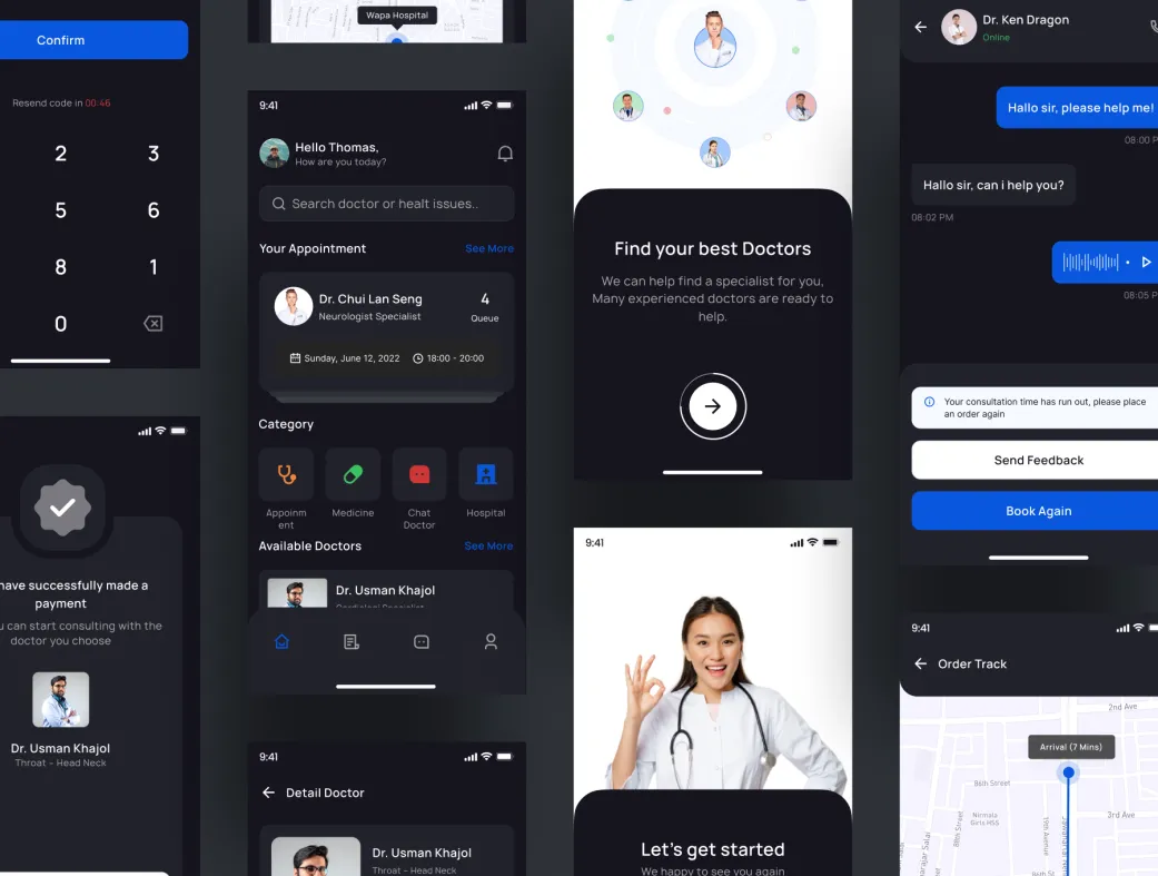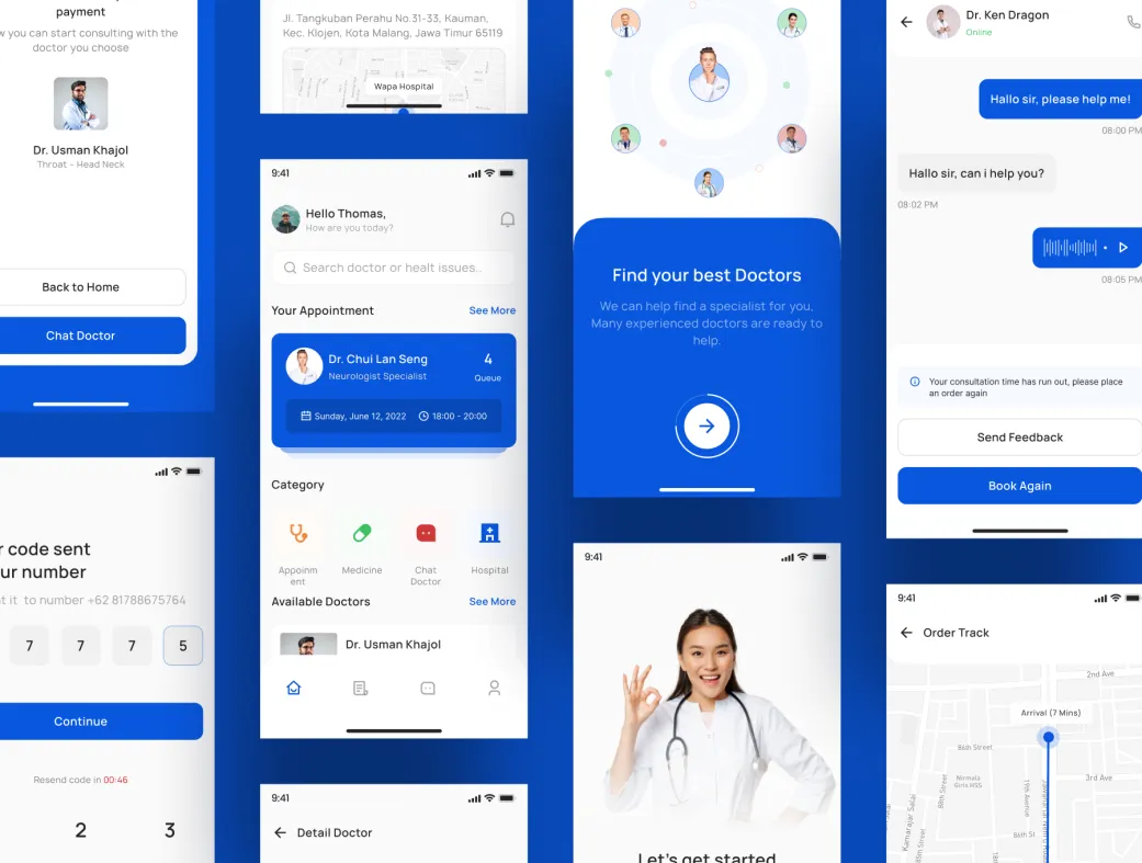 کیت UI پزشکی آیاواس Ngelu شامل صفحههای مختلفی است که به راحتی میتوان از آنها در اپلیکیشنهای پزشکی و خدمات بهداشتی استفاده کرد. از جمله این صفحهها میتوان به صفحهٔ شروع، ورود به سیستم، ثبتنام، صفحهٔ اصلی، ایجاد نوبت، مشاوره، خرید دارو، جستجوی بیمارستان، تاریخچه تراکنشها، پروفایل و پیامها اشاره کرد. این تنوع صفحهها به شما کمک میکند تا تمام نیازهای کاربران را پوشش دهید و تجربه کاربری یکپارچهای را ارائه دهید.
