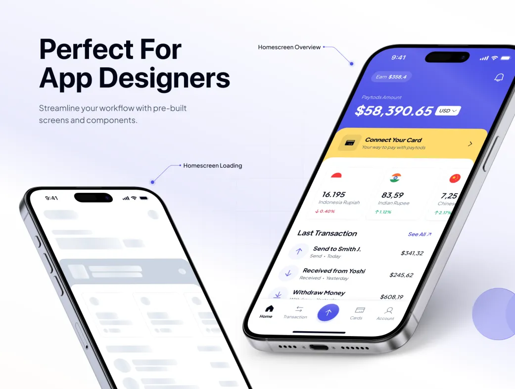 کیت UI اپلیکیشن موبایل انتقال پول Paytods یک مجموعه طراحی premium است که برای پروژههای فینتک مدرن ساخته شده. این کیت شامل تمام کامپوننتهای ضروری برای ایجاد تجربه کاربری روان در انتقال پول، پرداختها و مدیریت مالی است. طراحان و توسعهدهندگان ایرانی میتوانند با استفاده از آن، اپلیکیشنهای موبایل حرفهای بسازند و زمان طراحی را تا ۵۰٪ کاهش دهند.