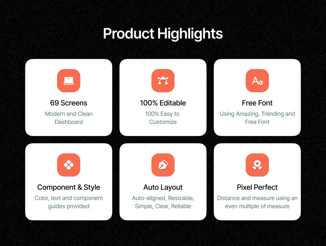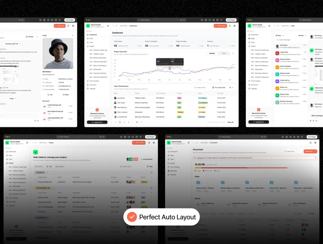 کیت Projectly با ارائه بیش از 70 صفحه طراحی شده، به شما این امکان را میدهد که به راحتی و بدون نیاز به طراحی مجدد، از طرحهای آماده استفاده کنید. تمامی صفحات بر پایه وکتور طراحی شدهاند، به این معنی که میتوانید آنها را به راحتی و بدون افت کیفیت تغییر اندازه دهید. این کیت دارای یک راهنمای استایل جامع است که به شما کمک میکند تا به راحتی با رنگها، فونتها و عناصر طراحی کار کنید.