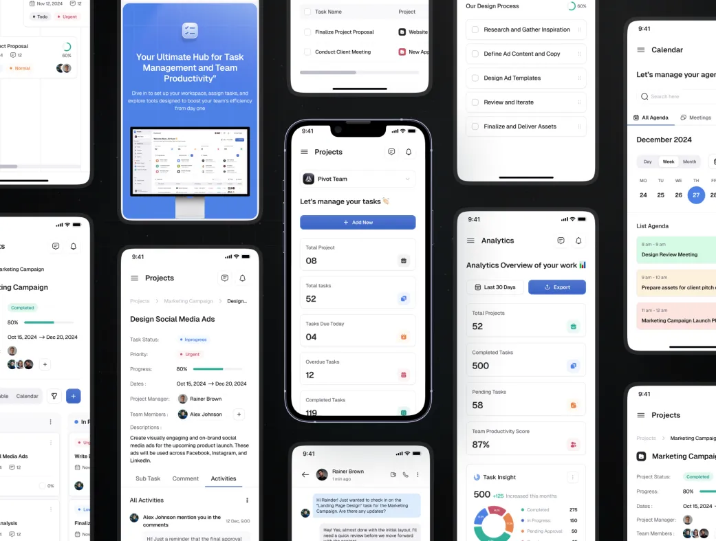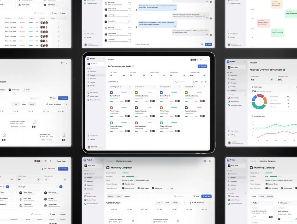 کیت پروتسک شامل صفحات متنوعی است که نیازهای کامل یک اپ مدیریت پروژه را برآورده میکند: