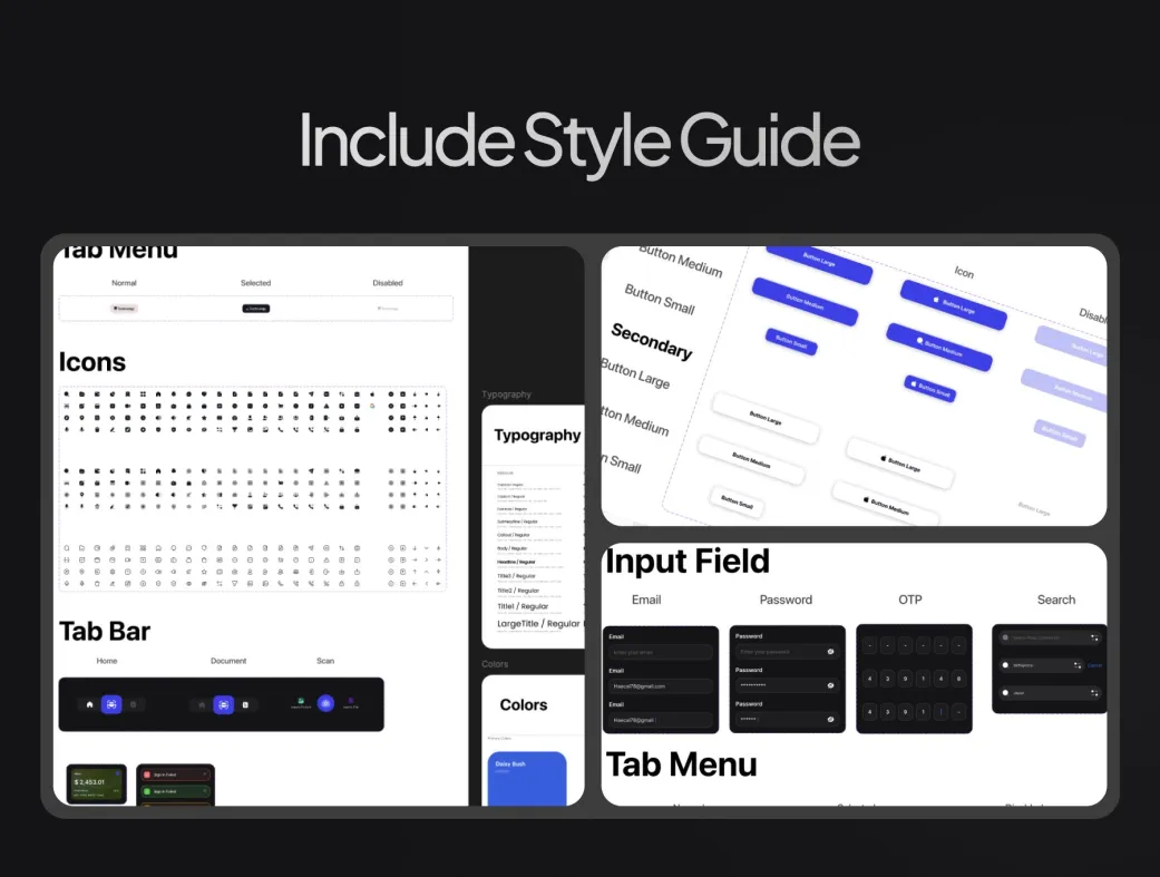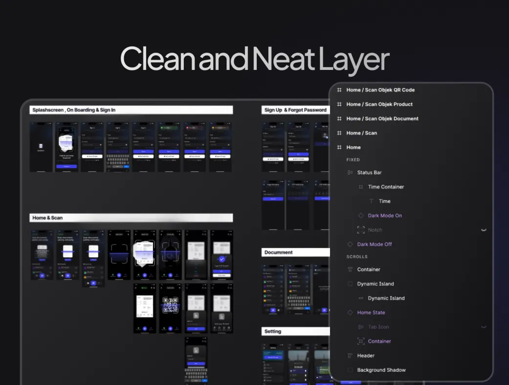 این کیت شامل دستهبندیهای مختلف صفحه است که به راحتی میتوانید از آنها در طراحی برنامههای خود استفاده کنید. از صفحه ورود، فراموشی رمز عبور، ثبتنام و تنظیم حساب کاربری گرفته تا صفحات اصلی، اسکن اسناد، تصاویر و کدهای QR، تمامی این صفحات بهگونهای طراحی شدهاند که کاربر به راحتی بتواند از آنها استفاده کند.