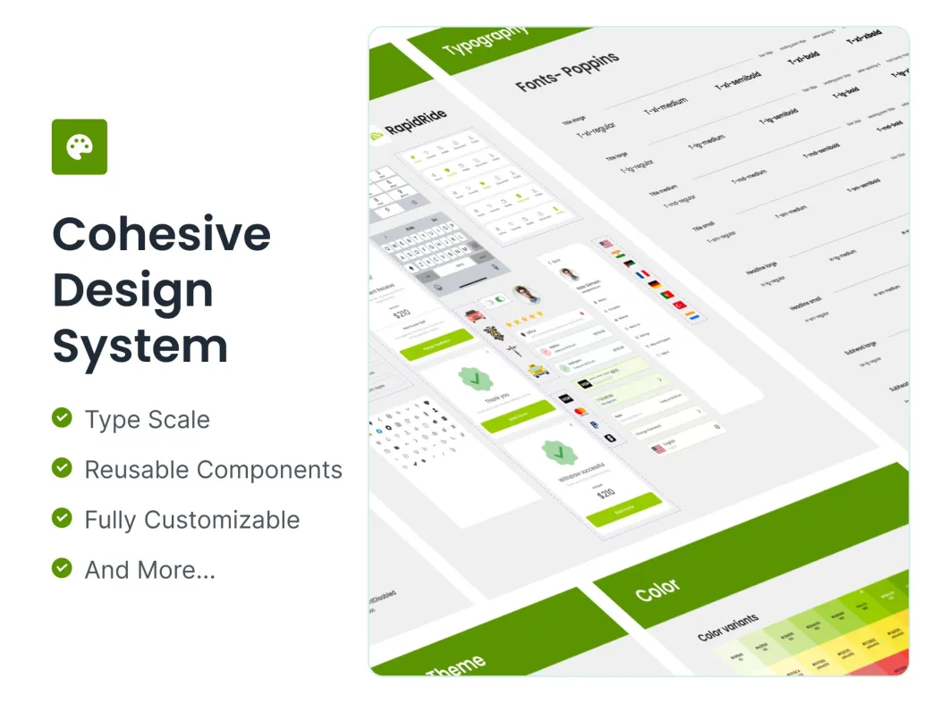 کیت UI اپلیکیشن خدمات تاکسی رپید تاکسی یک مجموعه پرمیوم و با کیفیت بالا است که تمام عملکردهای لازم برای اپلیکیشن موبایل تاکسی سرویس را پوشش میدهد. این کیت در نرمافزار فیگما طراحی شده و شامل کامپوننتهای قابل استفاده مجدد، استایلهای متن و رنگ، و لایههای به دقت سازمانیافته میشود. با استفاده از رپید تاکسی، طراحان میتوانند به سرعت رابط کاربری مدرن و کاربرپسندی برای اپهای حملونقل ایجاد کنند و زمان توسعه را به طور چشمگیری کاهش دهند.