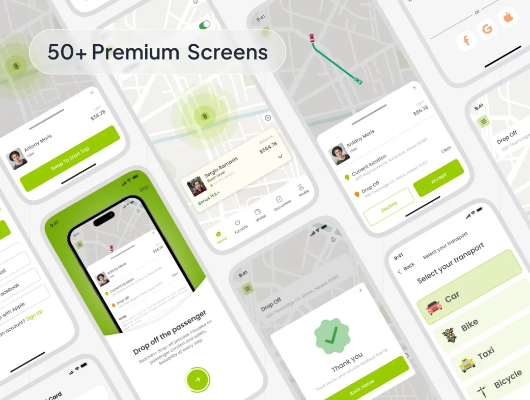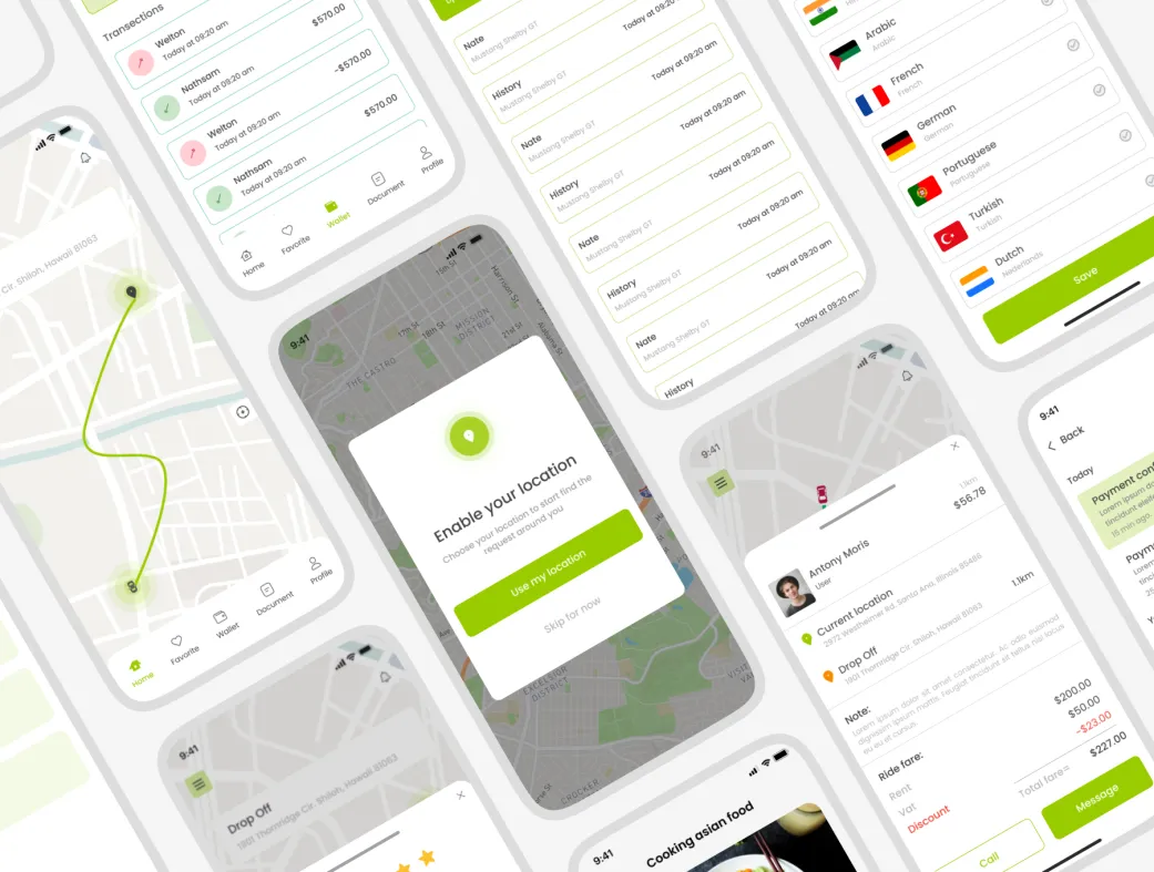 از کیت UI رپید تاکسی برای طراحی صفحات رزرو تاکسی، نقشههای ناوبری، پروفایل کاربر و پرداخت آنلاین استفاده کنید. این کیت در پروژههای اپ iOS و اندروید عالی عمل میکند و با تمرکز بر تجربه کاربری، نرخ حفظ کاربران را افزایش میدهد.