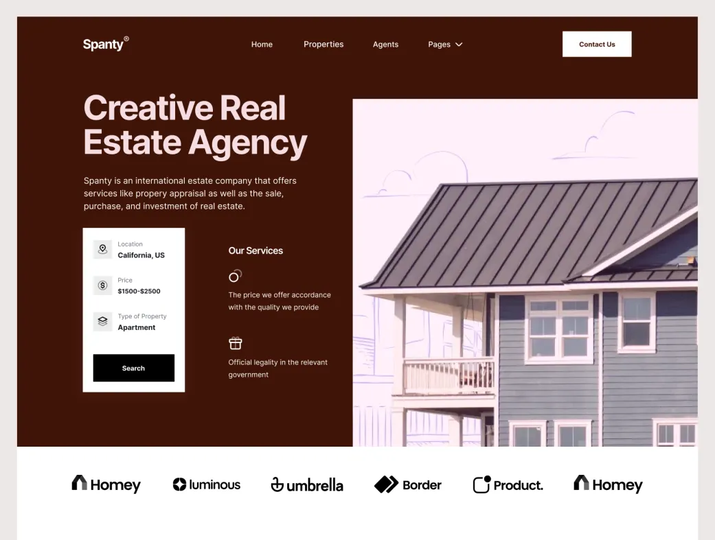 کیت UI رایگان وبسایت املاک و مستغلات | Spanty | Spanty Website