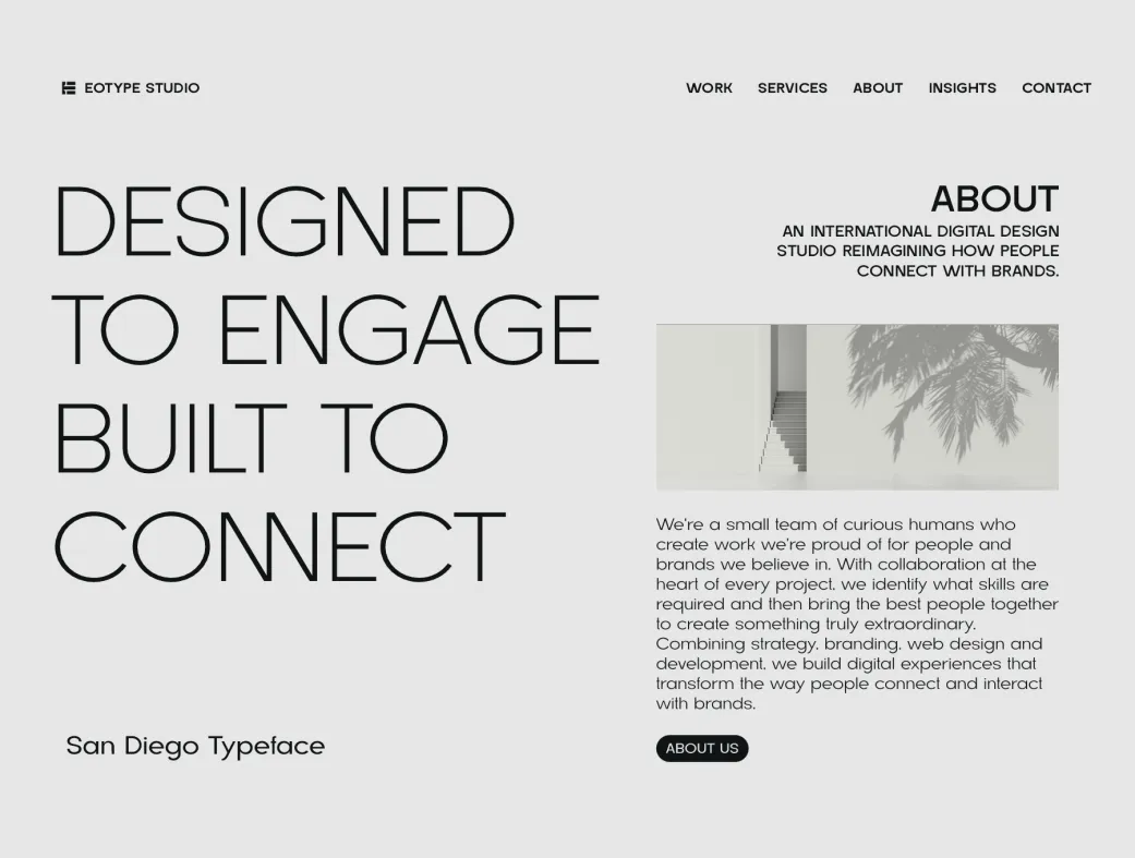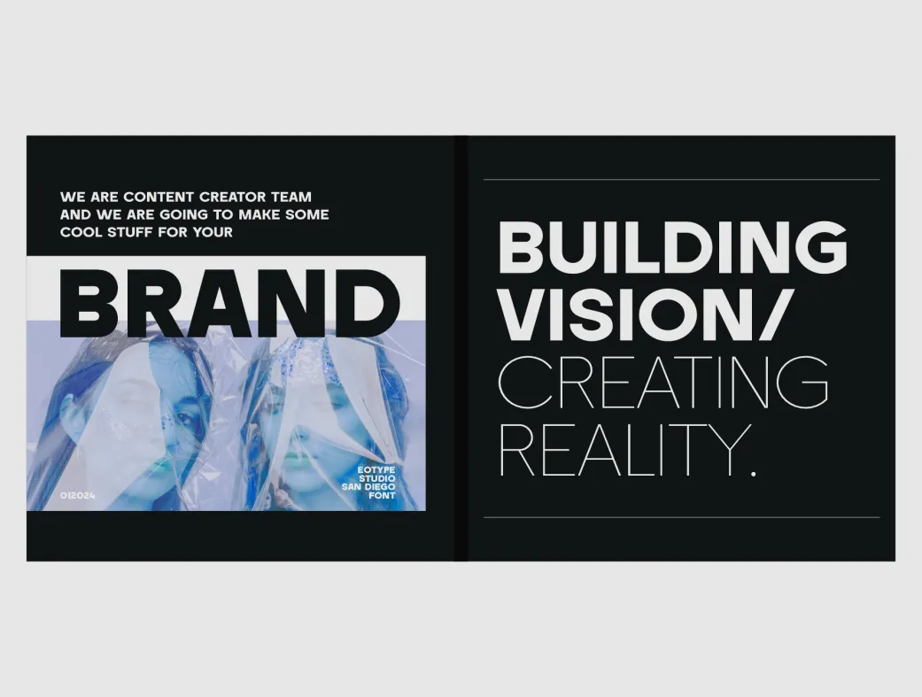 فونت سن دیگو | San Diego یک فونت sans serif مدرن و تازهوارد است که توسط استودیو Eotype Foundry طراحی شده و شامل ۹ استایل مختلف میشود. شکلگیری حروف این فونت بر پایه زیباییشناسی هندسی است و ظاهری تمیز، حرفهای و امروزی به پروژههای شما میبخشد.