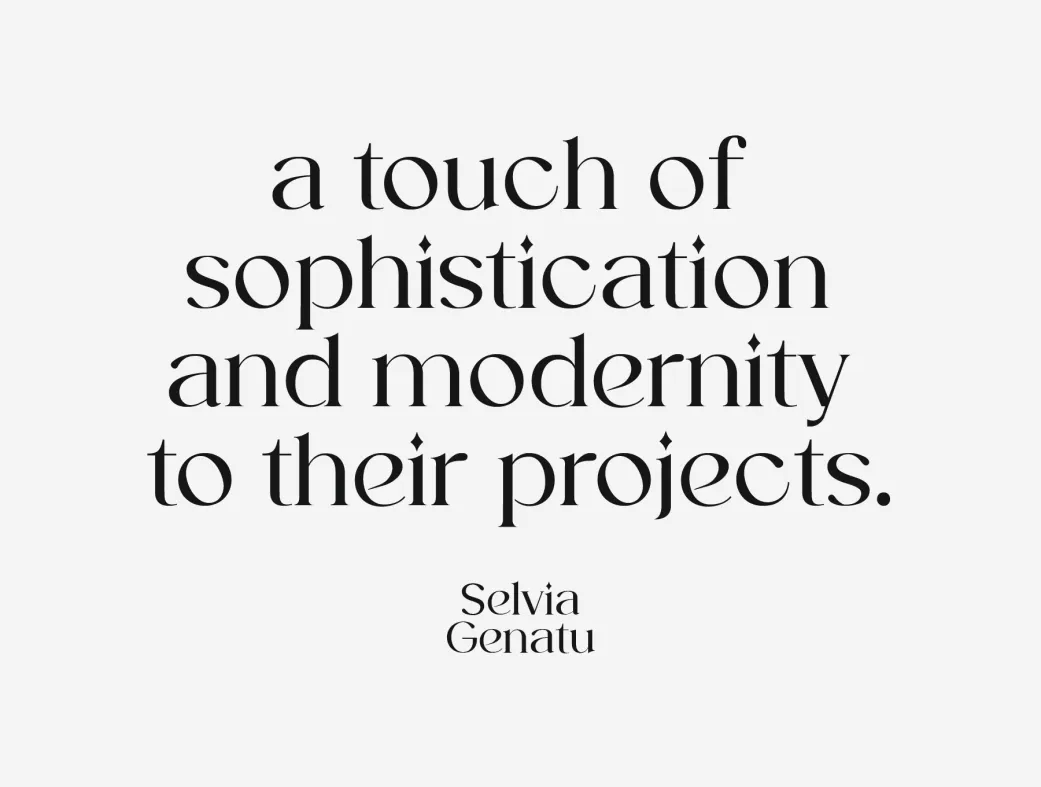 فونت سلویای جنات تنها یک فونت نیست، بلکه یک بیانیه هنری است که جذابیت هر طراحی را با لمسهای از ظرافت افزایش میدهد. این فونت با تناسبهای دقیق حروف، خوانایی بهینهای را در هر اندازهای تضمین میکند. با توجه به طراحی مدرن و کلاسیک آن، این فونت گزینهای عالی برای پروژههای گرافیکی مختلف شامل برندینگ، تبلیغات و چاپ است.