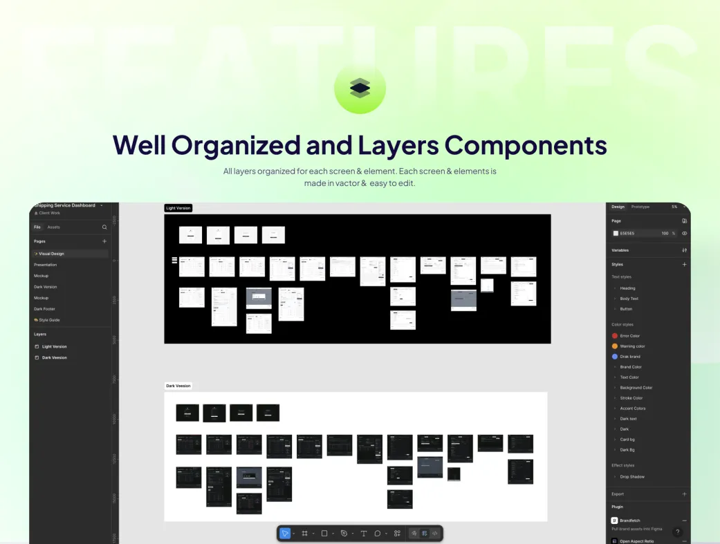 این کیت | Shipping Service شامل حالتهای روشن و تاریک، طراحی پیکسلپرفکت و سازگار با دستگاههای مختلف است و فرآیندهای کلیدی مانند مدیریت موجودی، پردازش سفارش و ردیابی محموله را سادهتر میکند.