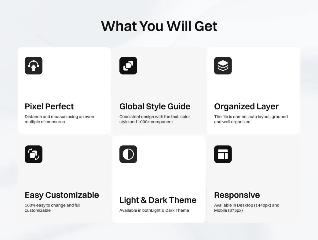 برای شروع کار با کیت ShopSwift، کافی است فایلهای فیکما را دانلود و به محیط طراحی خود اضافه کنید. شما میتوانید از نمادها و صفحات آماده استفاده کنید و آنها را بر اساس نیاز خود ویرایش کنید.