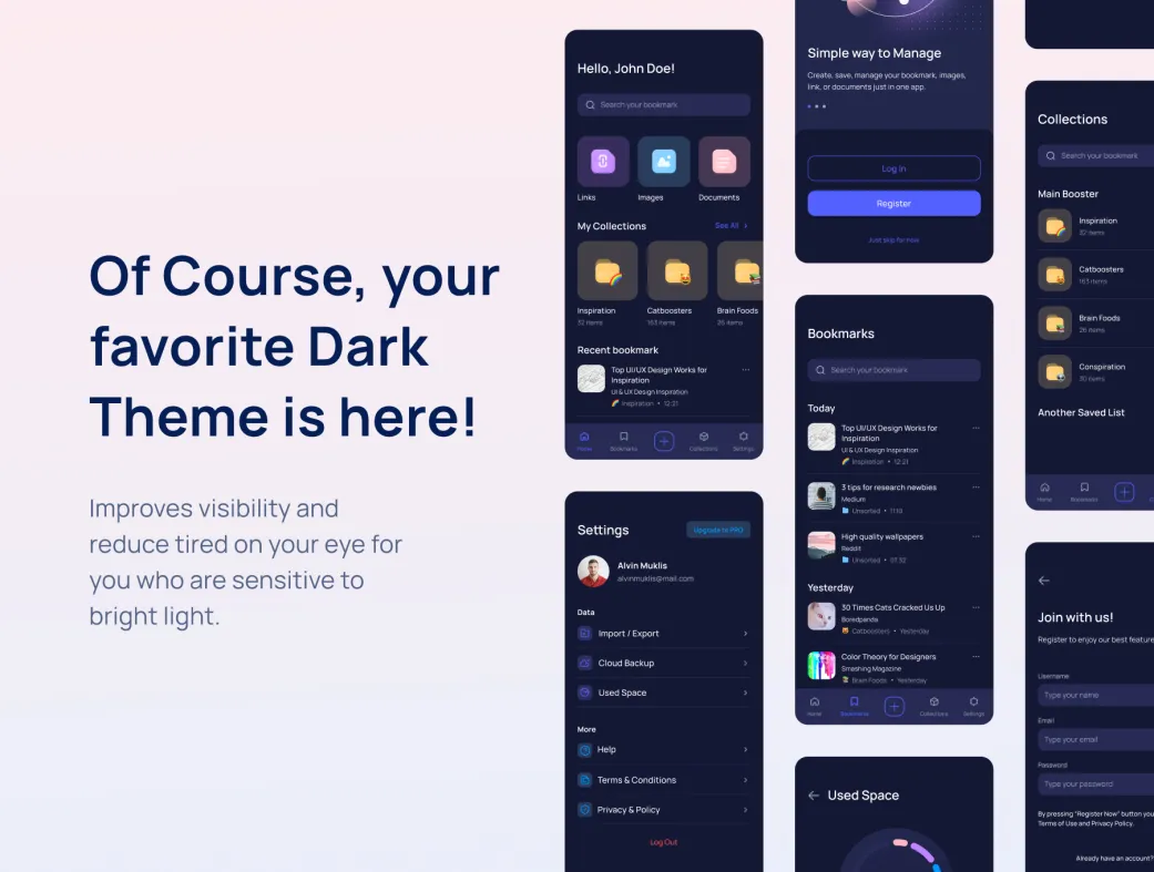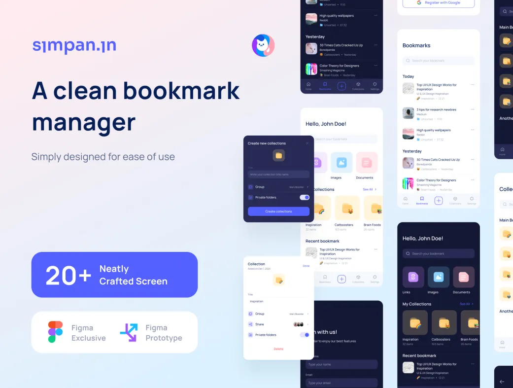 کیت UI مدیریت بوکمارک سیمپانین | Simpanin | Simpanin Bookmark Manager App Ui Kit