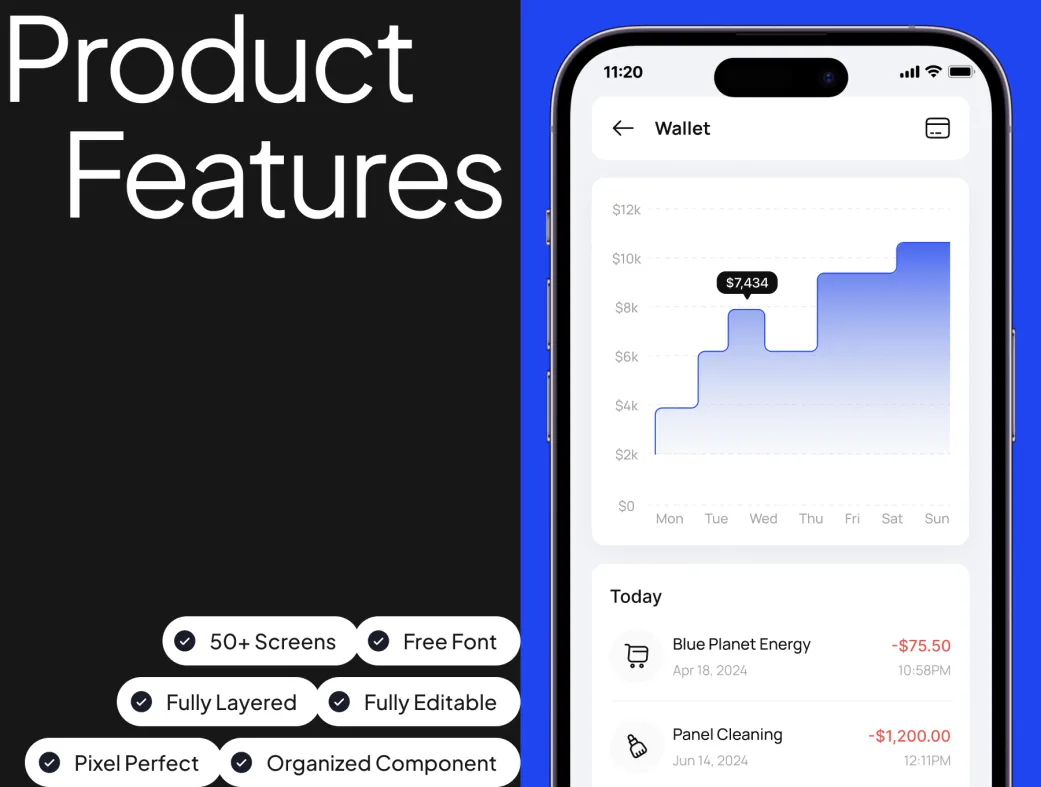 این کیت رابط کاربری موبایل برای فروش، نصب و نگهداری پنلهای خورشیدی طراحی شده و شامل بیش از ۵۰ صفحه حرفهای و دقیق است. از مرور محصولات تا زمانبندی نصب و پیگیری خدمات، همه چیز برای یک تجربه کاربری روان و ساده در مسیر انرژی پایدار فراهم شده.