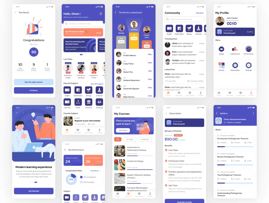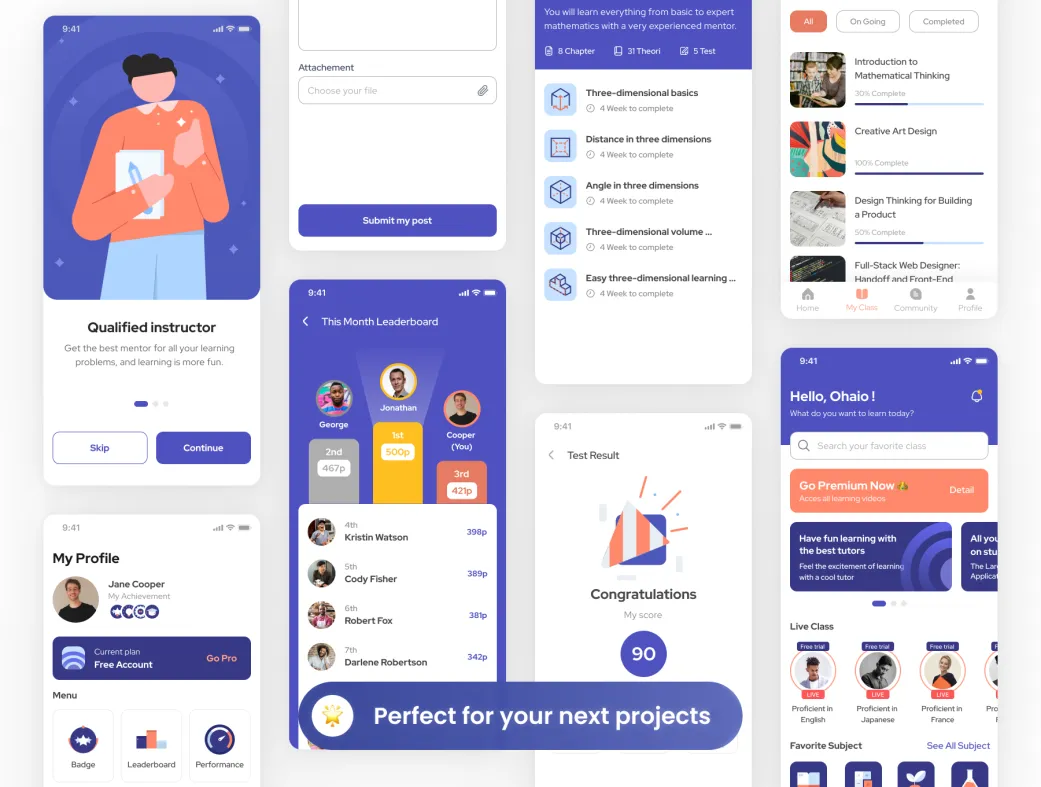 کیت UI موبایل آموزش آنلاین: بهترین انتخاب برای طراحان اپلیکیشن
