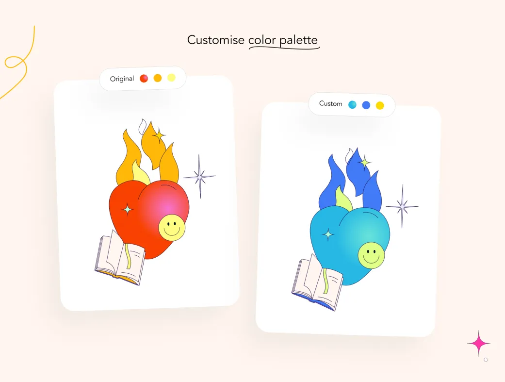 این مجموعه شامل ۱۲ ایلاستریشن کاملاً قابل ویرایش است که لایهبندی منظم و کیفیت رزولوشن بالا دارند. ست ایلاستریشن رویاهای سوررئال نه تنها برای اپلیکیشنهای موبایل و وب مناسب است، بلکه با پشتیبانی نامحدود تیم، خیال شما را از هرگونه مشکلی راحت میکند. استفاده از این ایلاستریشنها زمان طراحی را کاهش میدهد و خلاقیت را افزایش میدهد، بهخصوص در پروژههای مرتبط با mindfulness و درمان holistic.