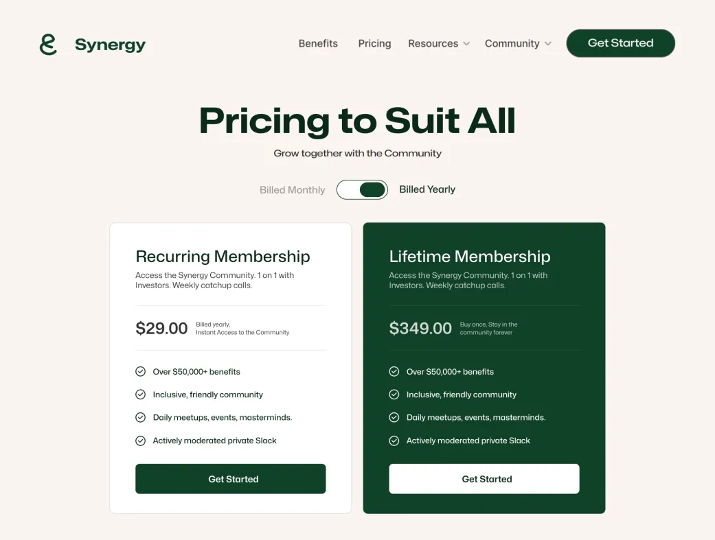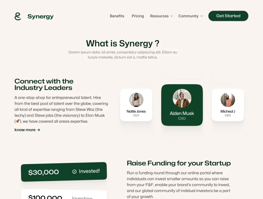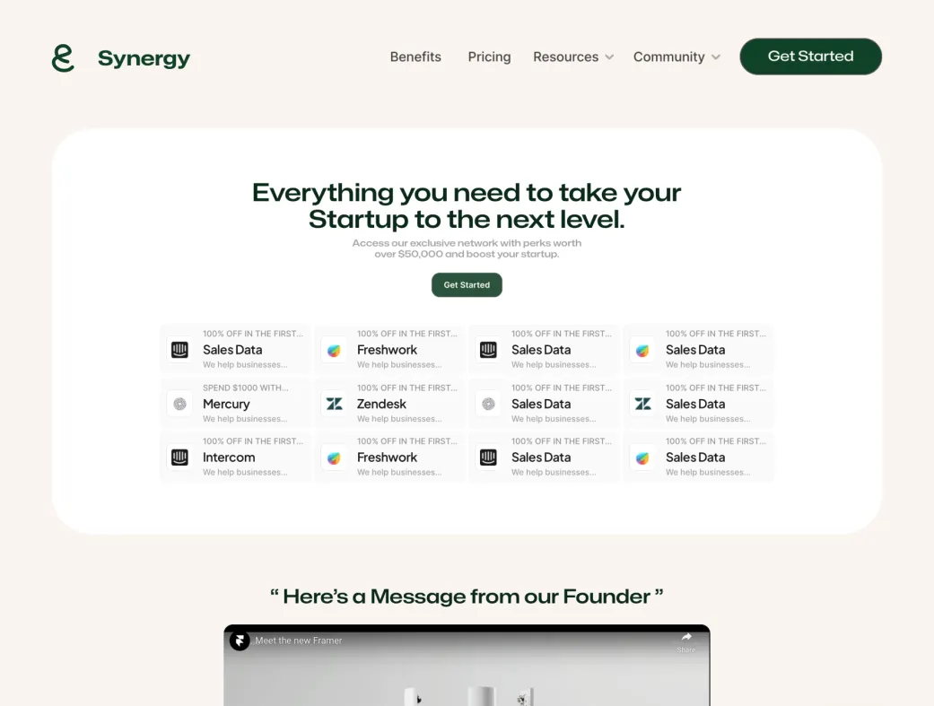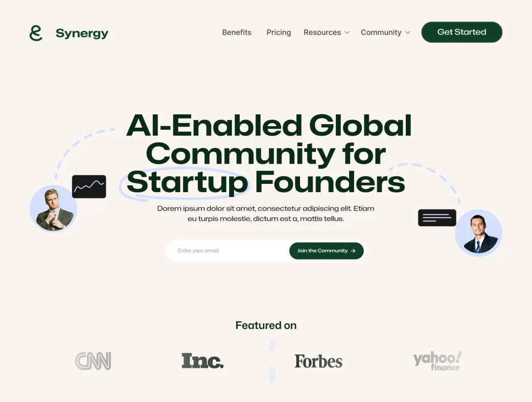 این قالب برای ساخت لندینگ پیجهای حرفهای جوامع استارتاپی، پلتفرمهای هوش مصنوعی، SaaS communityها و وبسایتهای جذب عضو عالی است. با تمرکز بر اتصال بنیانگذاران، جمعآوری سرمایه، رشد سریع از ایده تا MVP و ارائه مزایای انحصاری (مانند تخفیف ابزارهای بزرگ مثل Stripe، Notion و Intercom)، سینرژی به شما کمک میکند تا یک اکوسیستم قدرتمند بسازید.