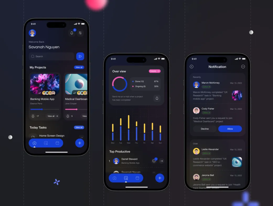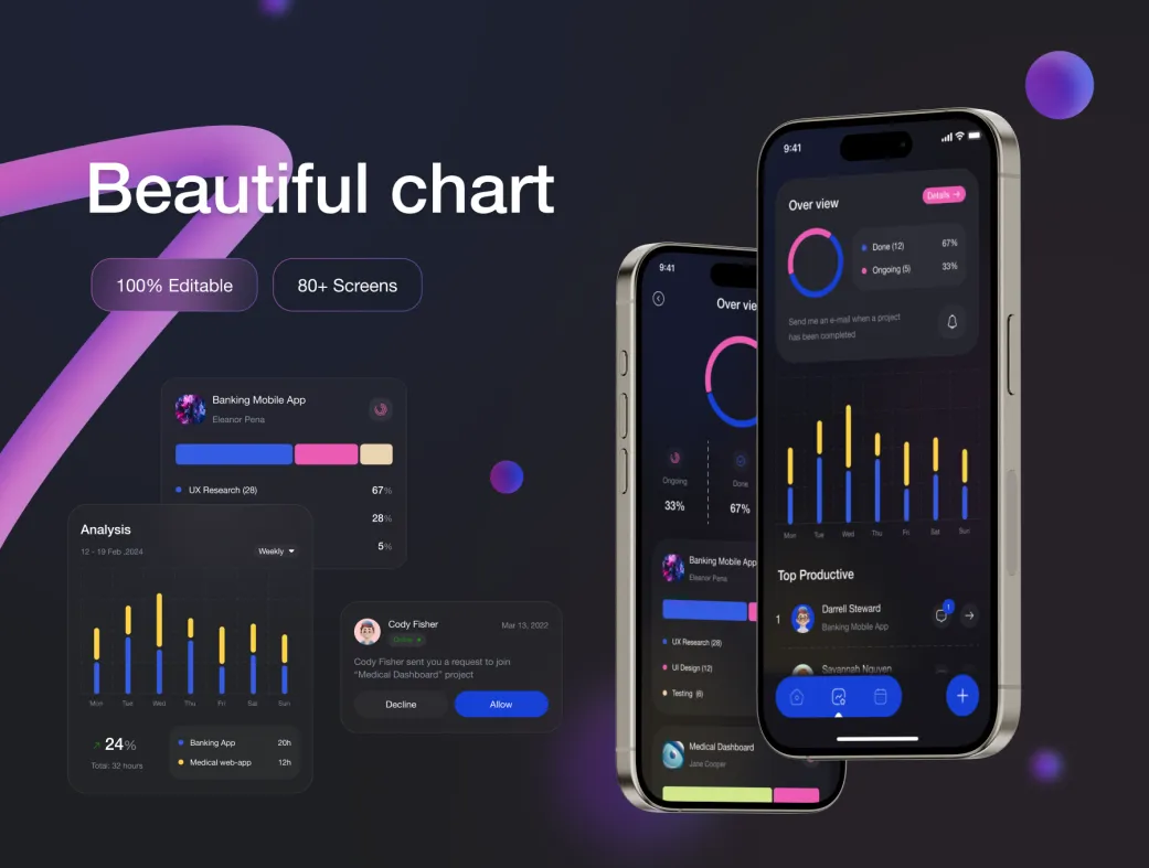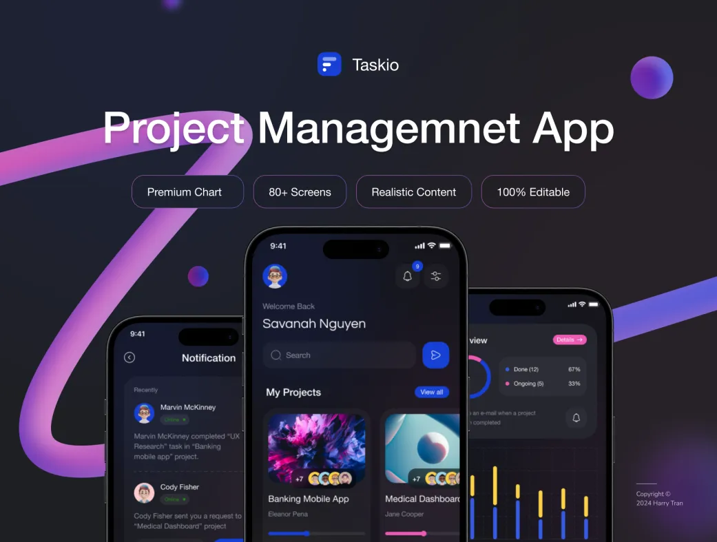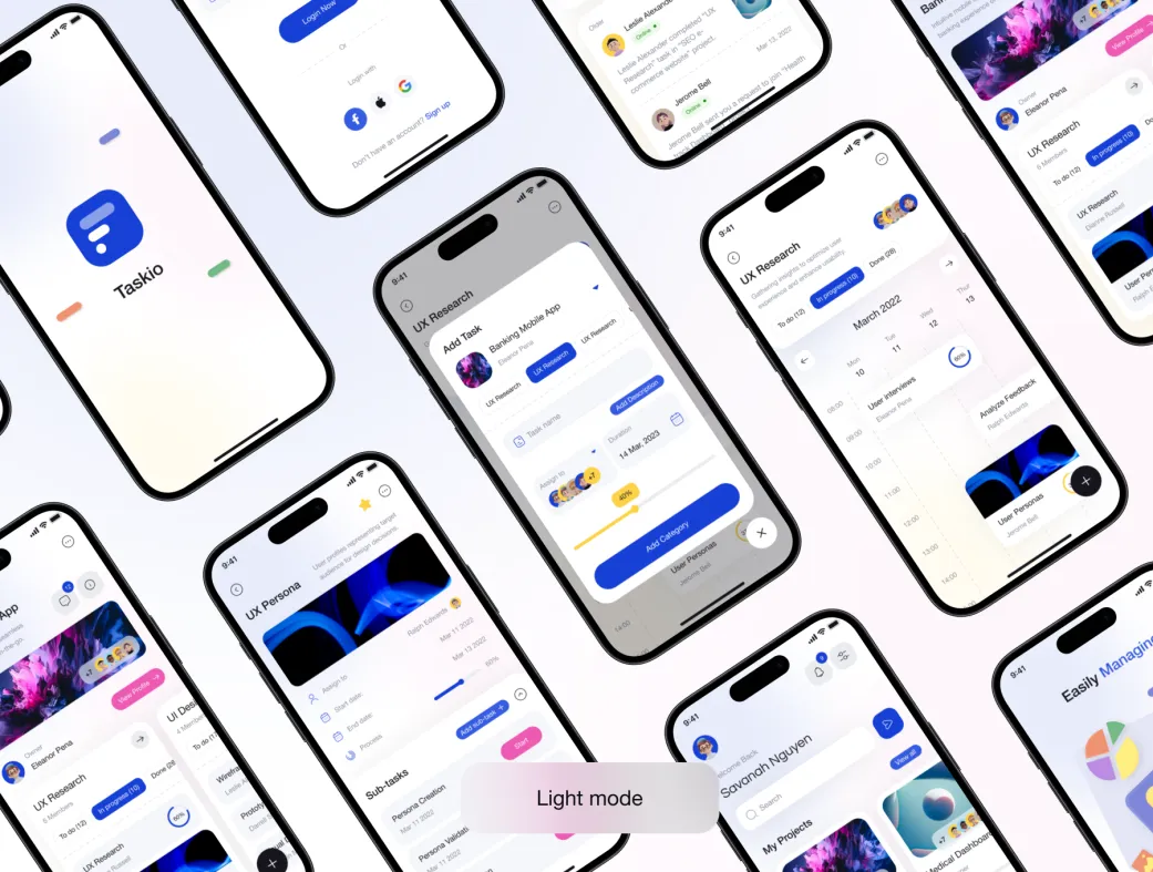 Taskio - Project Management Mobile UI Kit بهترین انتخاب برای طراحانی است که میخواهند رابط کاربری اپلیکیشن مدیریت پروژه، تسک و همکاری تیمی را بهسرعت و با کیفیت بالا بسازند. این کیت موبایل کاملاً برای دستگاههای iOS و اندروید بهینه شده و تجربه کاربری روان و جذابی ارائه میدهد.