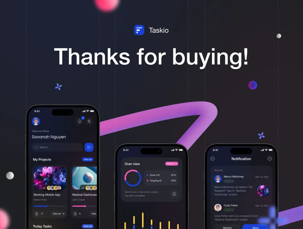 این محصول توسط طراح حرفهای تهیه شده و با استانداردهای روز UI/UX موبایل همخوانی کامل دارد. اگر به دنبال قالب فیگما مدیریت پروژه موبایل، کیت UI تسک منیجر یا رابط کاربری اپ productivity هستید، Taskio گزینهای ایدهآل و مقرونبهصرفه است.