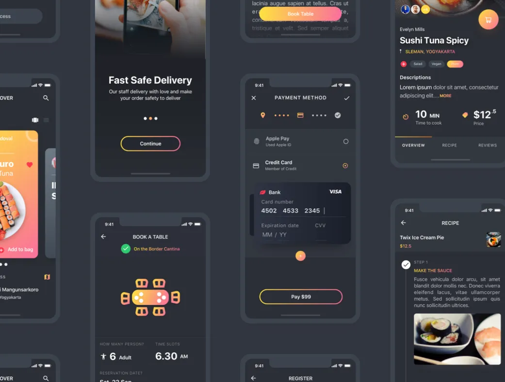 کیت UI رستوران و غذا "The Table" یک راهحل عالی برای طراحی اپلیکیشنهای تحویل غذا است. این کیت با تمرکز بر روی رستورانهای سوشی و استیکها طراحی شده و به کاربران امکان میدهد تا تنها با یک کلیک، سفارشات خود را به راحتی و سریع انجام دهند. با این کیت، روند سفارشگذاری و پرداخت در یک رابط کاربری شفاف و ساده انجام میشود.