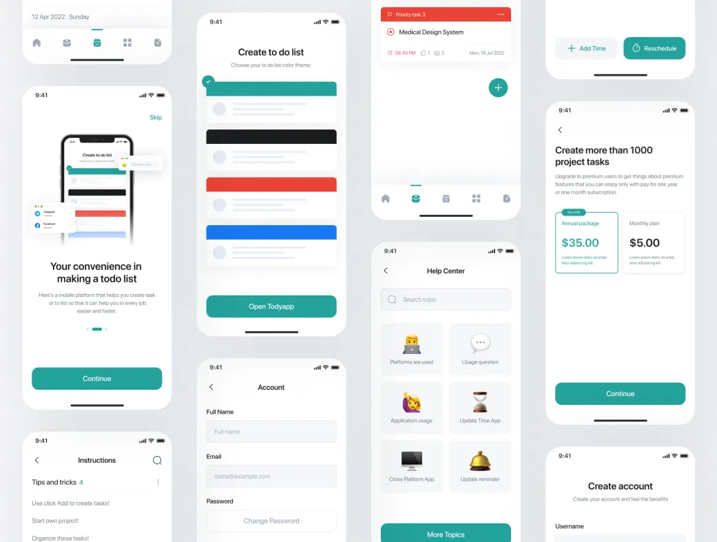 کیت UI اپلیکیشن لیست کارها | Todyapp | Todyapp - کیت UI اپلیکیشن لیست کارها | Todyapp - Todo List Mobile App UI Kit