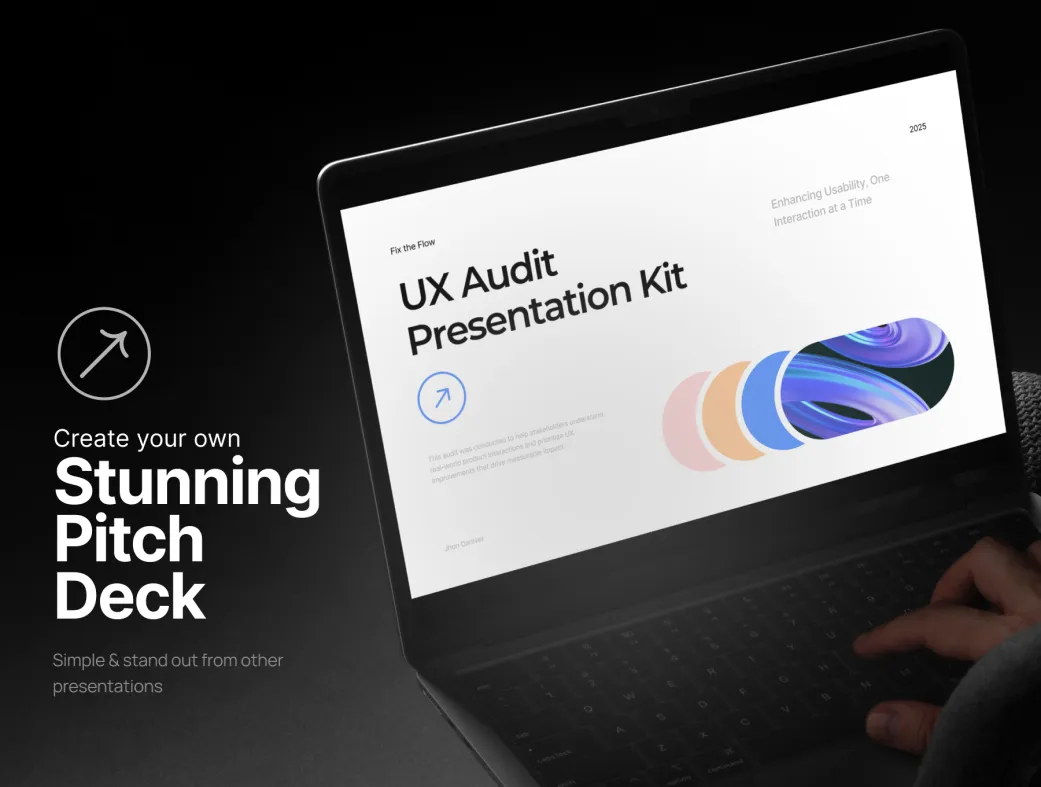 با Fix the Flow، ارائههای ممیزی UX خود را به سطح بالاتری برسانید و تأثیر ماندگاری ایجاد کنید. این قالب دانلود قالب ارائه فیگما را آسانتر از همیشه میکند