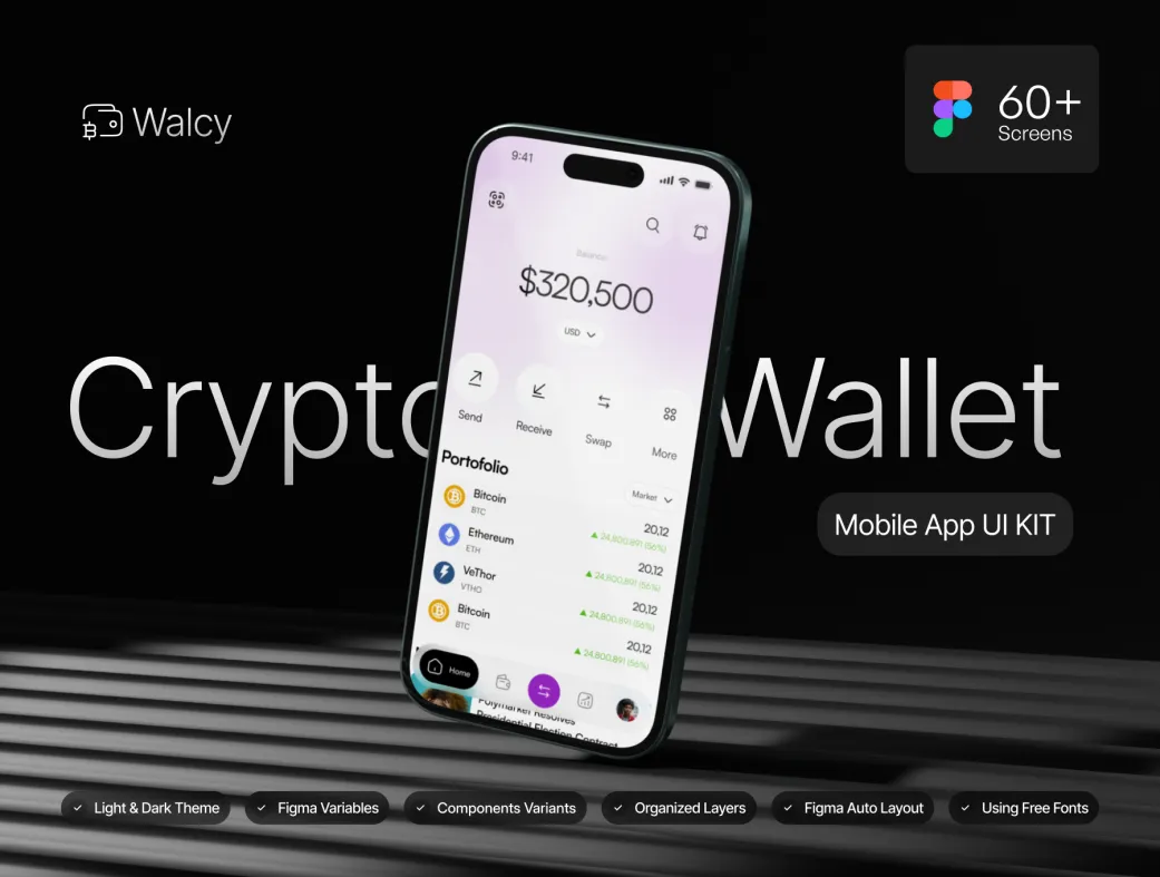 کیت UI موبایل کیف پول کریپتو والسی با سازماندهی عالی لایهها، ویرایش سریع و انعطافپذیر را ممکن میسازد. از حالت تاریک و روشن برای تطبیق با سلیقه کاربران بهره ببرید و با فونتهای گوگل رایگان، طراحی مدرن و بدون هزینه اضافی ایجاد کنید. این کیت کاملاً قابل سفارشیسازی است و به شما اجازه میدهد رنگها و عناصر را بدون محدودیت تغییر دهید. هر ایلاستریشن به طور منظم نامگذاری شده تا کار با رابط کاربری اپ کریپتو سریعتر شود.
